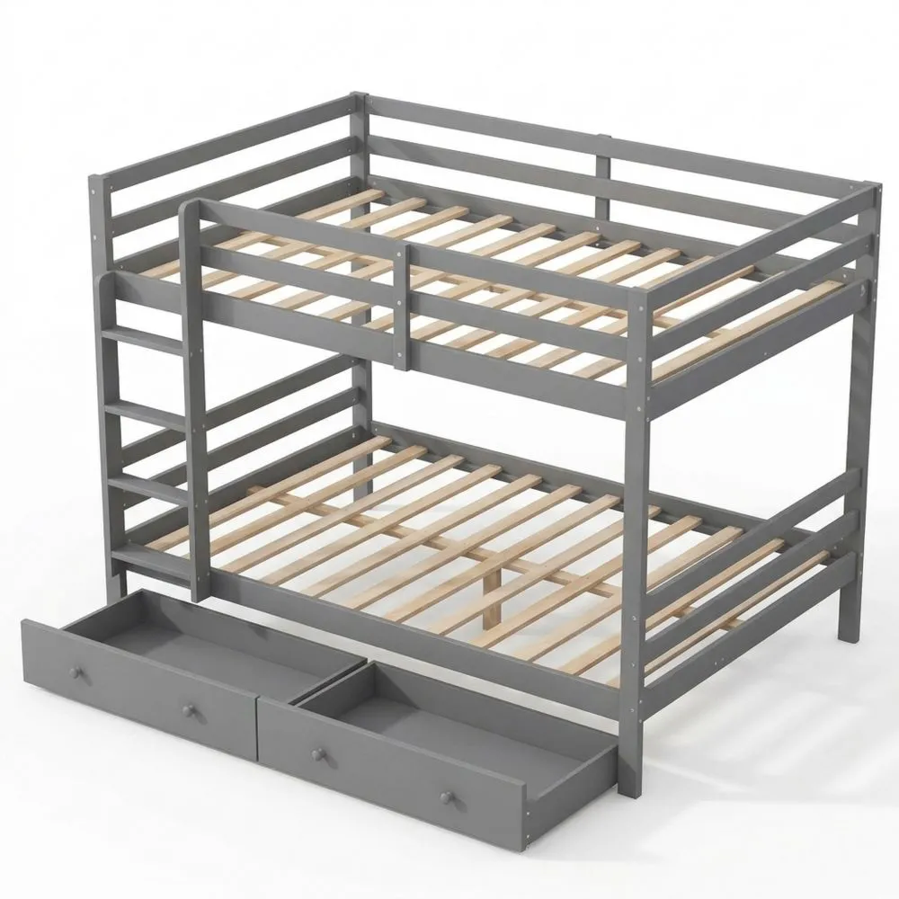 Este cama está fabricada con madera de pino y MDF. Cuenta con un compartimento de almacenamiento bajo la cama donde se pueden guardar juguetes, libros y más. El diseño aprovecha el espacio y mantiene el orden en la habitación. El cajón inferior es extraíble, facilitando su uso y adaptándose a diferentes necesidades.