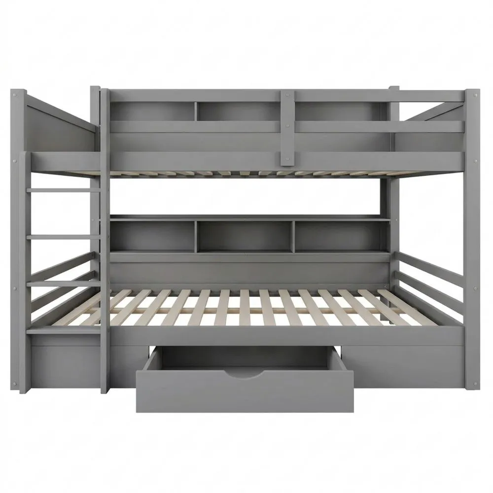 Cuenta con múltiples compartimentos laterales para objetos pequeños como libros y teléfonos móviles. La parte inferior tiene un cajón para almacenar ropa y otros artículos.