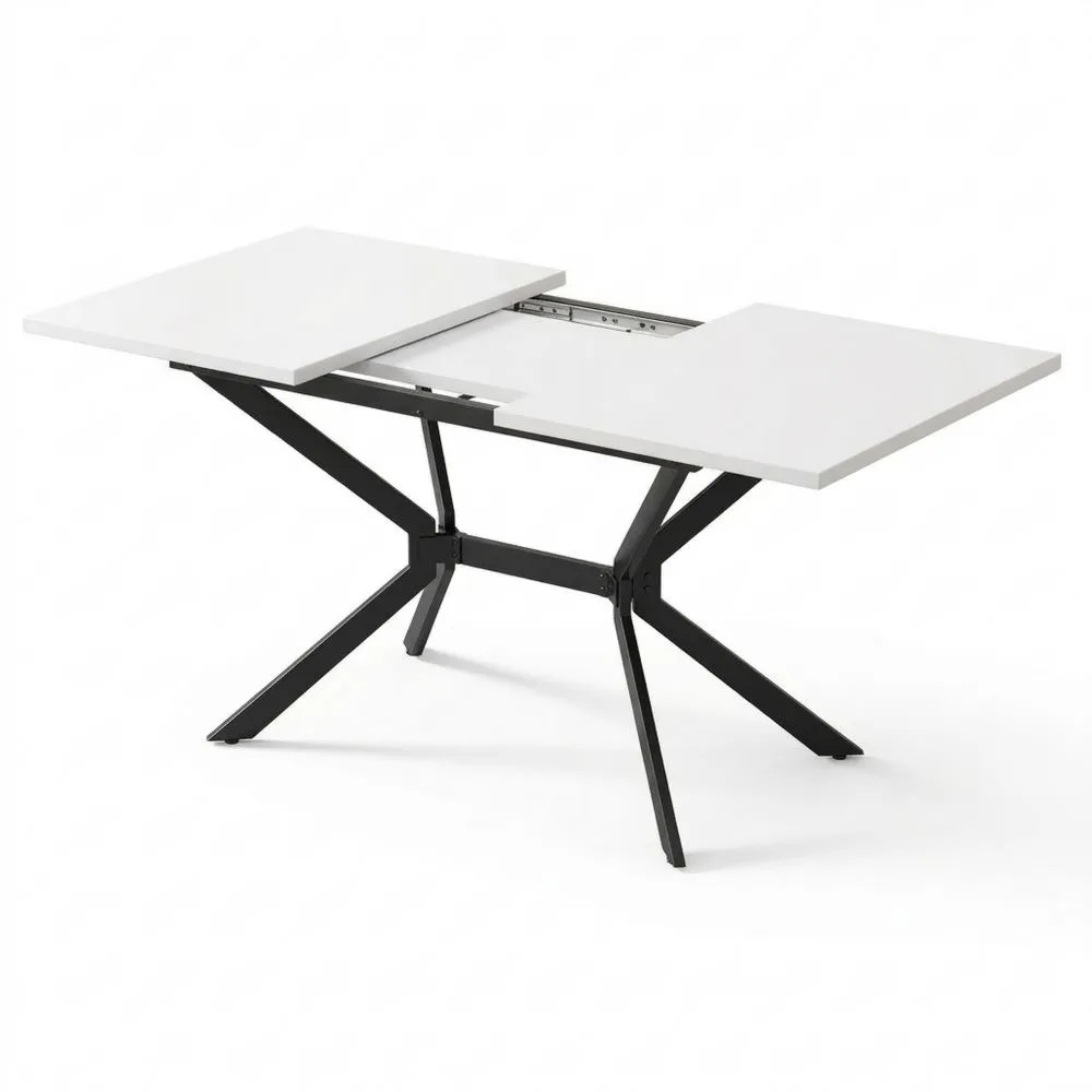 Esta mesa cuenta con un diseño sencillo con tablero blanco y patas de metal negro. El material del tablero es MDF, que proporciona durabilidad y estabilidad, además de una superficie lisa fácil de limpiar. Las patas metálicas aseguran la estabilidad de la mesa. La mesa es telescópica, permitiendo ajustar la longitud entre 120 y 160 cm, acomodando de 4 a 6 personas según la ocasión. Incluye instrucciones de montaje detalladas y herramientas para facilitar la instalación.