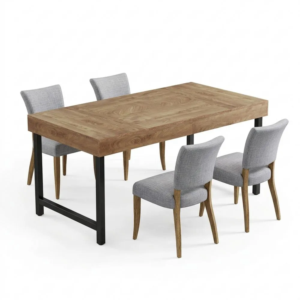 Mesa de comedor rústica para 4-6 personas, 140cm con patas de metal robustas para hogar y espacios pequeños, marrón rústico